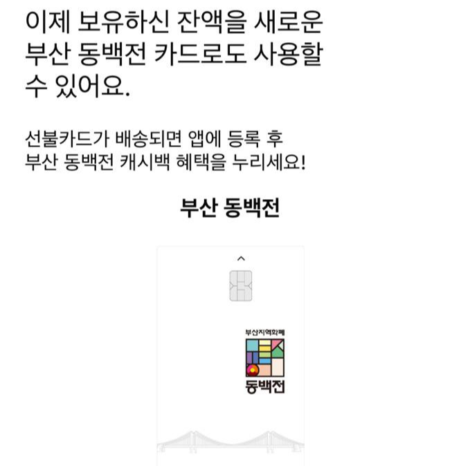 저는 기존에 동백전 체크카드를 사용하고 있어서 이번에 코나아이 선불카드를 발급받고도 기존 보유금액은 이관이 되더라구요.