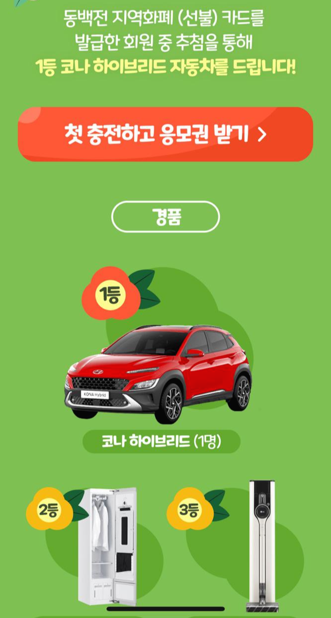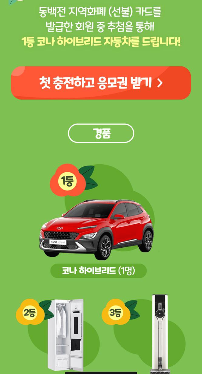 오늘부터 동백전 신규발급 회원 및 10만원 첫 충전하는 분들에게 추첨을 통해 경품을 증정하는 이벤트도 하고 있으니 아직까지 동백전이 없는 분들은 빨리 발급받으시길 추천드립니다.