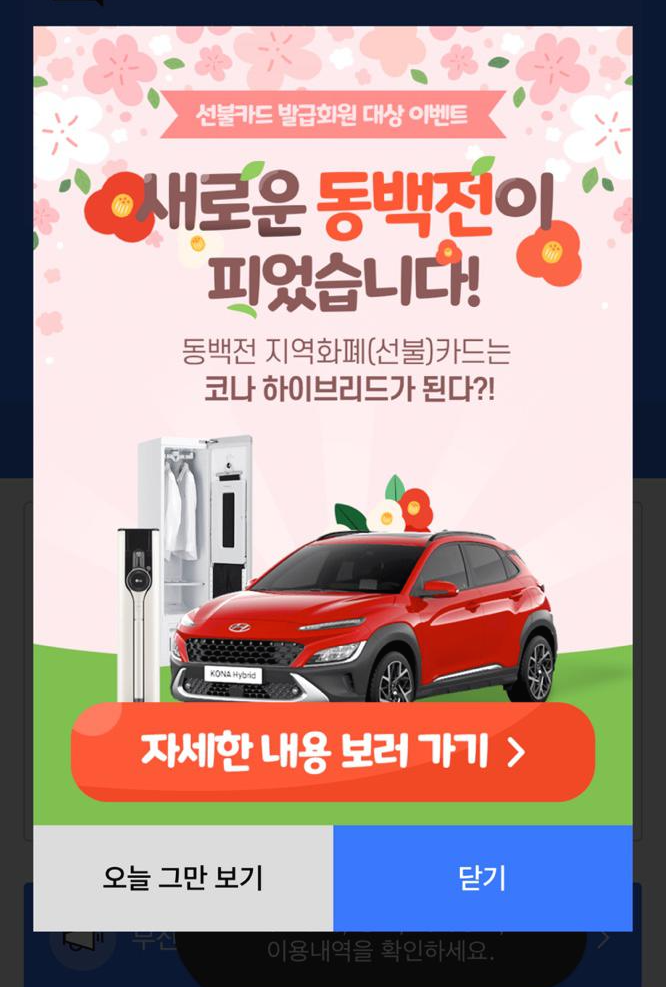 부산 지역화폐 동백전(선불카드)가 기존 KT에서 코나아이로 이관되면서 오늘 4월 5일부터 이벤트를 하고 있습니다.