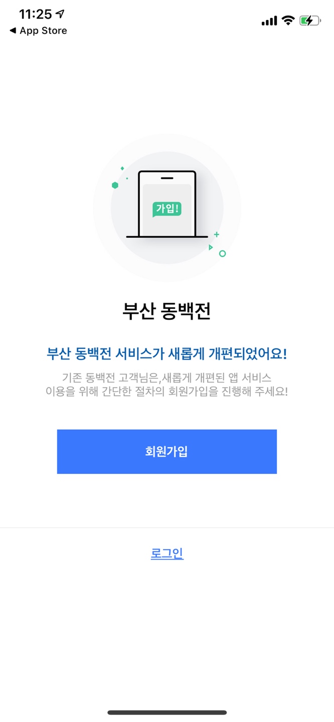 동백전 앱 다운로드 후 실행을 시키고 회원가입을 합니다.