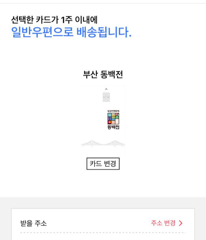선불카드 재발급시에는 살고 있는 집주소를 입력하면 집까지 동백전카드를 무료배송해주니 은행방문없이 간편하게 발급이 가능합니다.