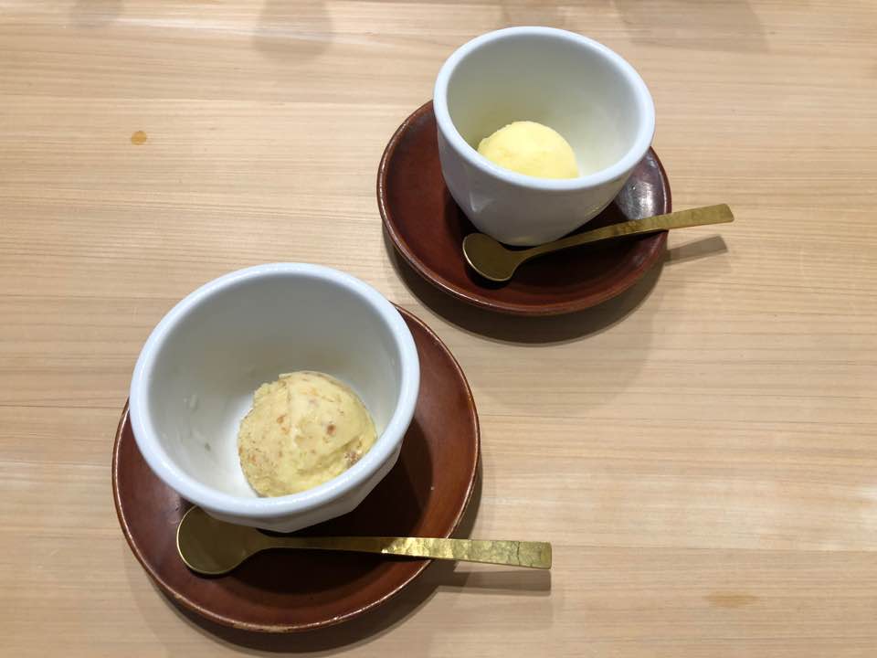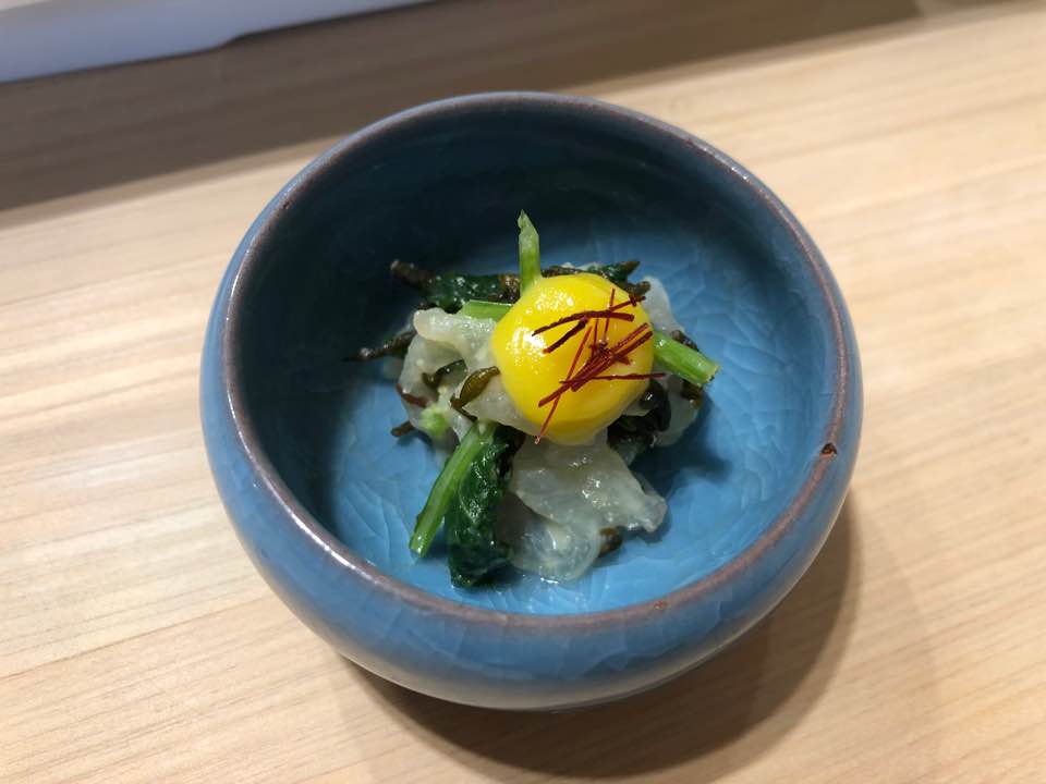 참치살에 마를 섞은 요리와 제주갑오징어에 먹물소금과 유자껍질을 올린 스시, 생새우스시가 나옵니다. 소금도 먹물소금을 사용하고 얼린 유자껍질을 갈아서 스시에 살짝 뿌려주니 향이 좋았습니다.