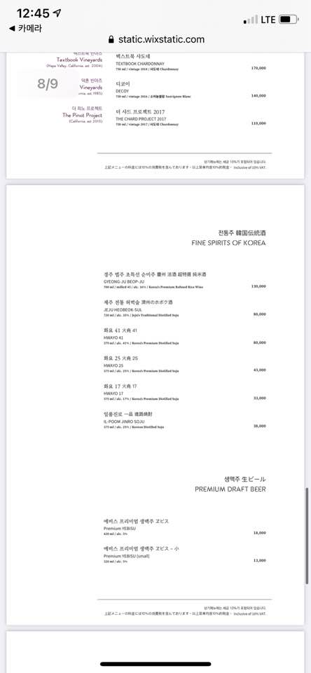 고급 스시 오마카세 식당답게 음료나 주류도 가격대가 좀 있습니다.